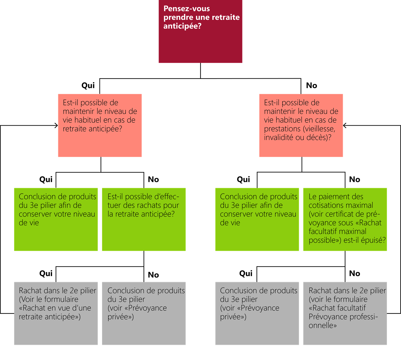 Des prestations ne sont possibles que si le règlement de l’institution de prévoyance les prévoit. Aucune prestation n’est prévue par la LPP en cas de décès. Nombre de caisses de pension prévoient dans leur règlement des prestations en capital ou sous forme de rente à la concubine ou au concubin. Consultez le règlement et votre certificat de prévoyance annuel sous Prestations en cas de décès pour déterminer si des prestations de survivants sont prévues et à quelles conditions. Ne pas oublier en cas de décès: aucune prestation ou bénéficiaire ne peut être pris en compte sur la base d’une disposition testamentaire. Veuillez tenir compte des dispositions du règlement de prévoyance et adressez-vous à votre conseiller en prévoyance si vous avez des questions. |